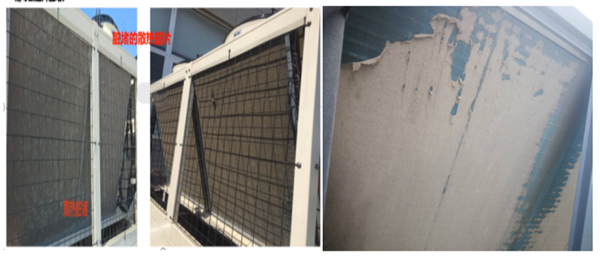 热泵机组都是安装在比较空旷的地方,运行时间久了翅片外面会有一层灰尘,导致机组散热不良,由其在杨柳絮时节更容易导致翅片脏堵,导致机组报高低压,排气温度过高,压机过载等故障,轻则影响机组的工作效率,严重时甚至会烧毁压缩机,导致系统瘫痪。