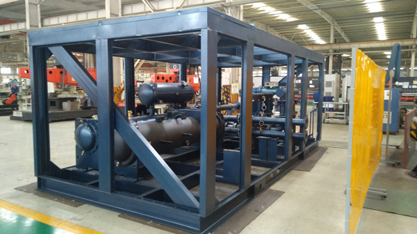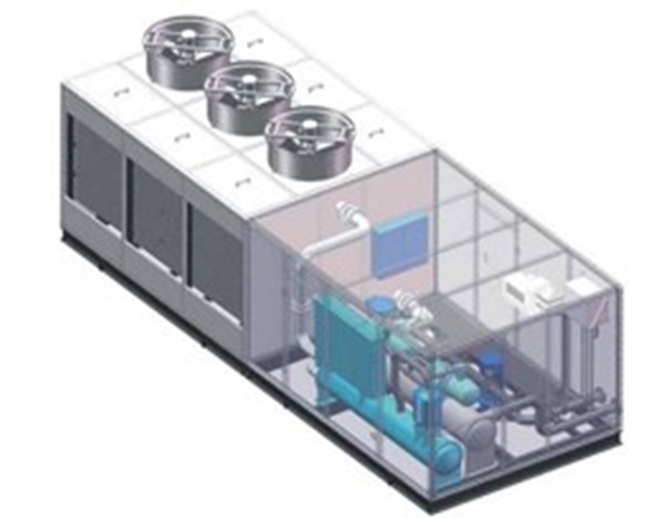 一体式冷水机组集制冷主机、冷却塔、电控柜、冷冻水管道、冷冻水泵、冷却水管道、冷却水泵、电子水处理仪、定压补水装置以及配套阀门、法兰于一体,客户仅需连接冷冻水管及电源即可高效运行,隶属于框架内的机房系统,可以直接代替常规空调机房且整体放置于室外的新型冷水系统。高度集成的系统,可使工程减少机房部分土建施工,节约土地资源,节省前期投资。