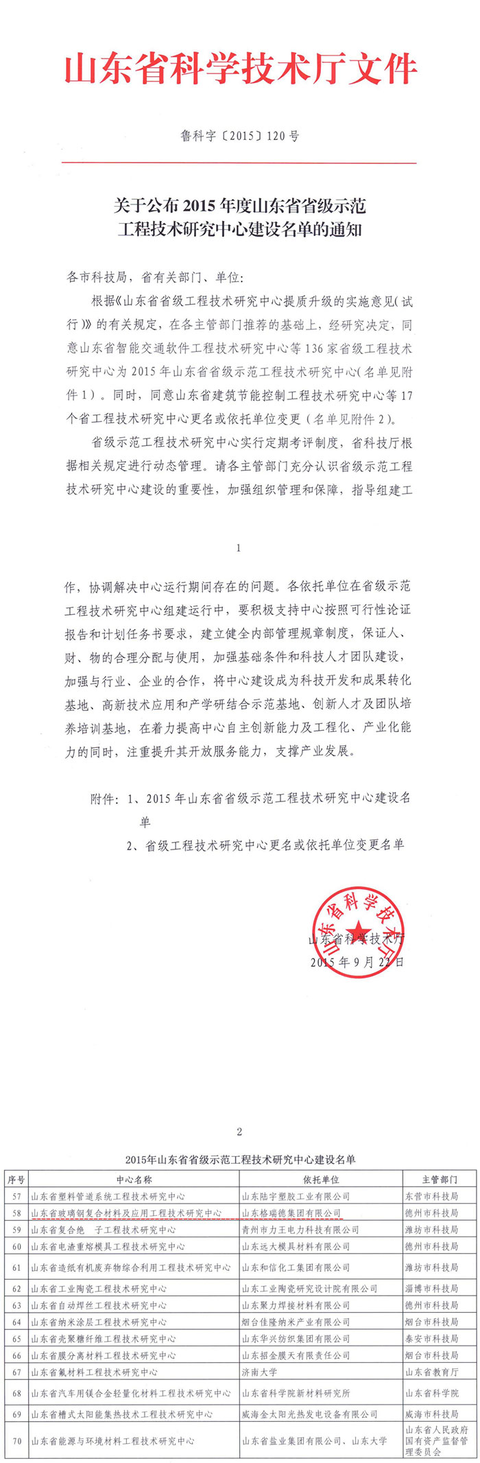 山东省省级示范工程技术研究中心批文