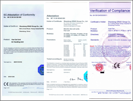 格瑞德集团具有独立的货物进出口资质,可自主报关和报检。具有对外承包工程资质证书,并顺利获得了中央空调末端及复合材料产品的AHRI、CE、SASO、ROHS等资质认证。