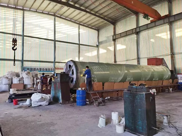 面对复合钢管生产受冬季环保、工期紧张、生产量大等压力,格瑞德集团岱海项目部本着经济化、实用化的原则采用塑料布及彩条布对生产车间进行了整体封闭,又利用现有厂区地热资源铺设管道及装配暖风机,提升工厂内整体温度,满足生产需求。同时为了加快生产进度,公司调派了2个班组生产人员支援岱海项目部,计划启动夜班生产,提高管道日生产量,最大程度上争取满足现场施工需求,力争年底前完成至少21km的玻璃钢管道供货任务。