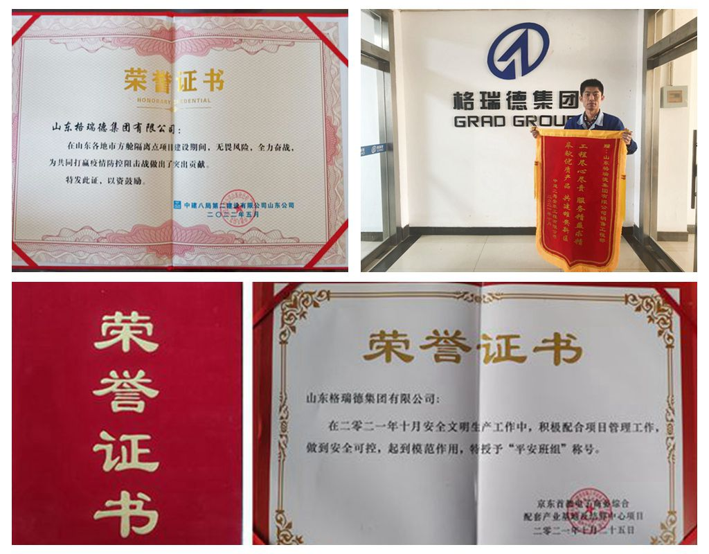 近年来,格瑞德集团与中建集团合作密切,承揽中建三局北京大兴国际机场抗震支架工程、中建八局日照科技文化中心风机采购及安装项目、中建二局雄东片区安置房及配套设施项等近400余个项目,合作额达10亿多元,在暖通空调领域具有深厚的合作基础。格瑞德集团先后获得中建八局“疫情防控阻击战先进单位”、中建五局“安全班组”、中建二局致谢锦旗、中建八局“优秀供应商”等荣誉,标志着中建集团对格瑞德产品质量、技术水平、服务水平等方面的高度认可,充分的证明中建集团对格瑞德集团的信任与肯定。