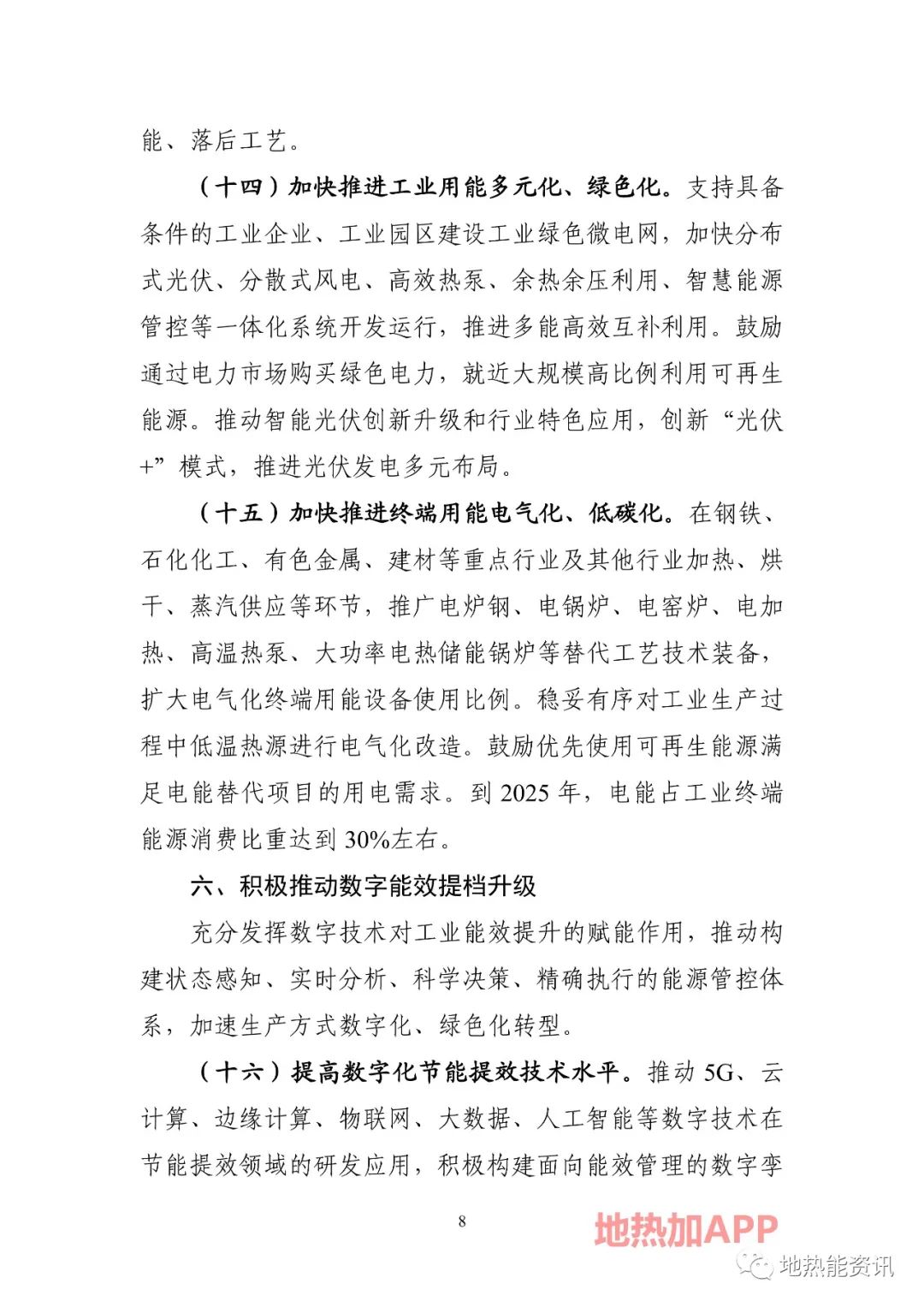 《行动计划》提出,加快推进终端用能电气化、低碳化。在钢铁、石化化工、有色金属、建材等重点行业及其他行业加热、烘干、蒸汽供应等环节,推广电炉钢、电锅炉、电窑炉、电加热、高温热泵、大功率电热储能锅炉等替代工艺技术装备, 扩大电气化终端用能设备使用比例。稳妥有序对工业生产过程中低温热源进行电气化改造。鼓励优先使用可再生能源满足电能替代项目的用电需求。到2025年,电能占工业终端能源消费比重达到30%左右。