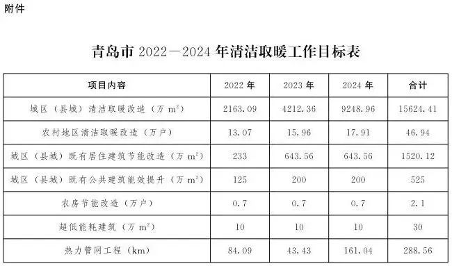青岛市冬季清洁取暖项目实施方案(2022-2024年)