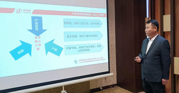 3月2日下午2时,湖北分公司召开2023年客户联谊会,集团执行总裁管志广致辞,欢迎参会客户并介绍格瑞德集团的软硬件实力和运营发展模式,他表示集团高度重视销售市场的开发与巩固,拓展合作方式,为广大客户宣传与使用格瑞德产品给予了充分的信心和底气。
