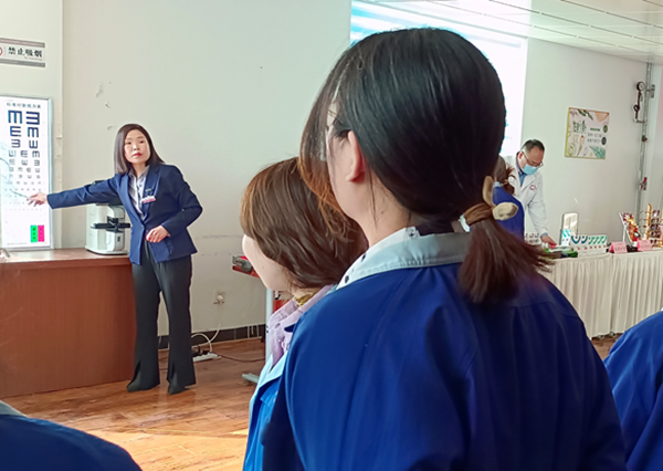 集团工会邀请英翔视光眼镜有限公司为现场女职工们进行眼部验光、清洗、更换眼镜零配件,传播护眼小常识和眼镜的配戴方式、保养方法。