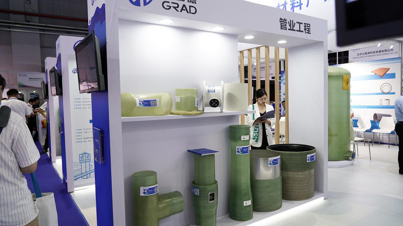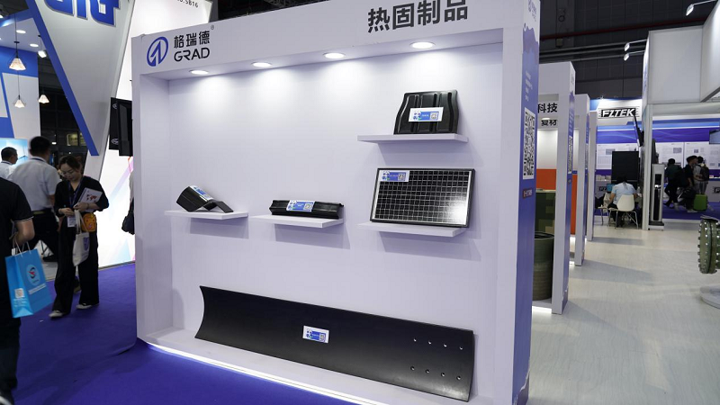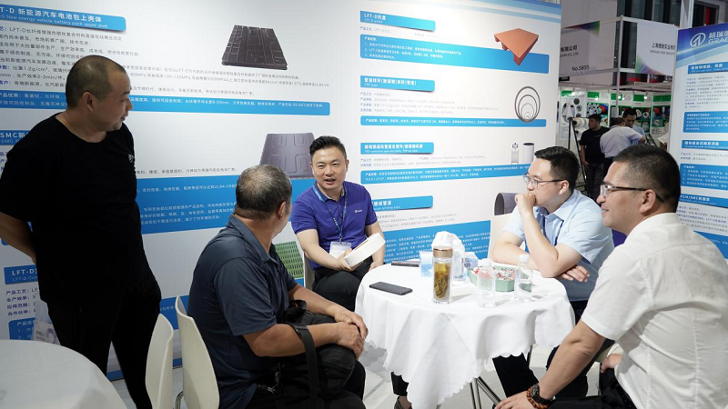 本次展会上,PCM电池盖、落地式直流充电终端、碳纤维医疗床板/头托、连续缠绕管道、玻璃钢模具产品等一系列复合材料成品成为万众瞩目的焦点。
