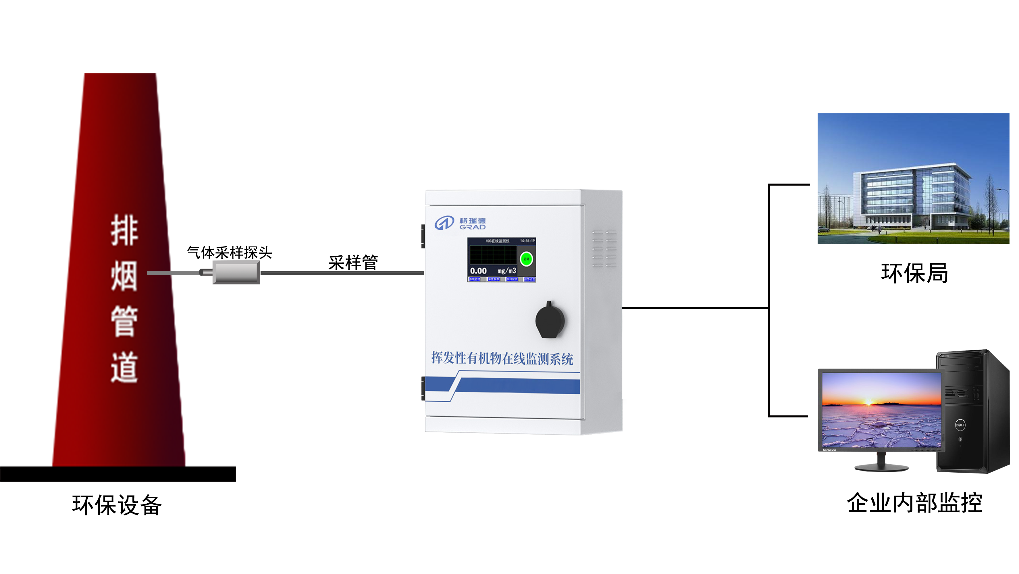 多场景的检测方式:支持有组织(烟筒)和无组织(厂界)气体监测。