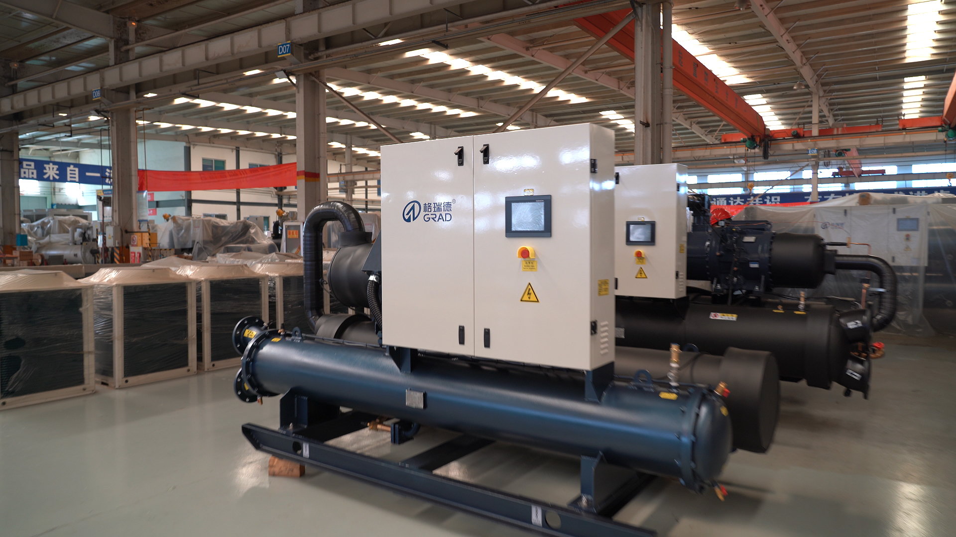 兴豪皮业工厂,格瑞德机组制取13-15℃工艺冷水,精准控温助力生产,老旧设备换新颜,生产效率与环保同行。