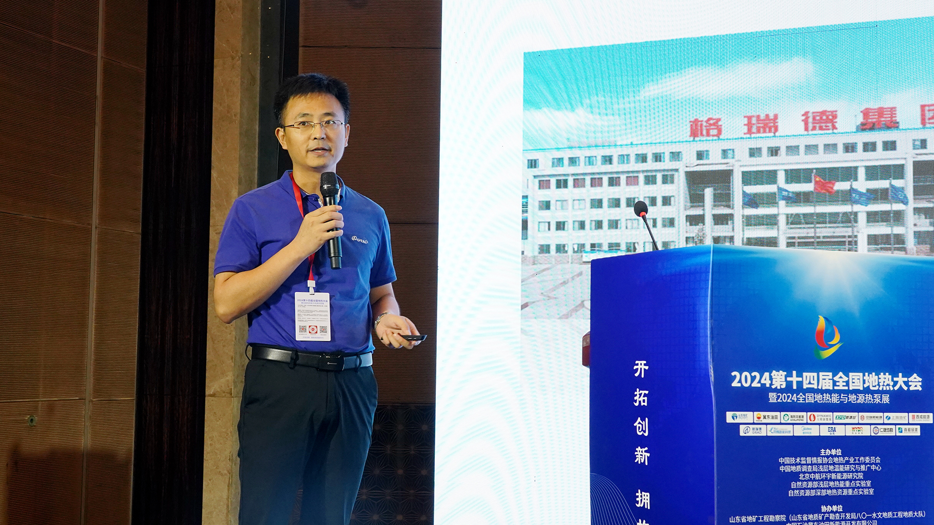 地热及热泵产业研究中心副主任王涛以“格瑞德全生命周期地热产业链”为主题进行现场宣讲,详细展示集团系统设计、技术研发、生产制造、检验检测、维修保养、数智化改造、销售服务等各环节的服务能力,并就公司在浅层地源热泵、地热尾水利用、中深层利用、格瑞德Sys+物联网技术等领域的经典案例向与会人员全面展示格瑞德工程承揽能力。
