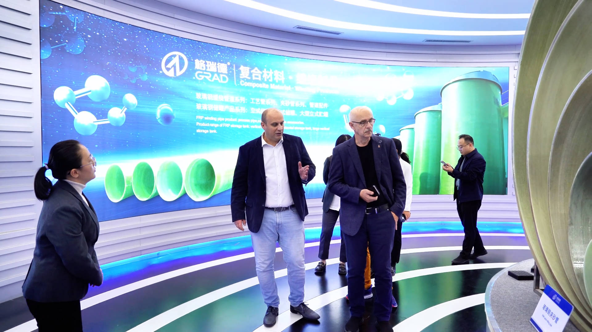 考察团参观了集团展厅,国贸销售一部部长程志艳将集团四大板块的产品特性、经典业绩、适用范围等向考察团作了详细介绍,并向考察团针对性介绍了集团主营产品在各自领域所取得的成绩及研发实力。考察团一行对集团的各项硬实力表示赞赏,并表示此次参观考察及时发掘了双方经贸合作的可能性,将在参观后就当地项目具体需求进一步深入沟通。