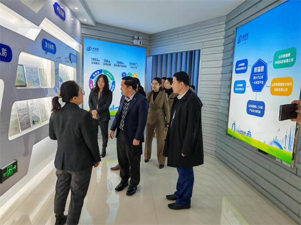 11月10日,柬埔寨工业、科技及创新部国务秘书索贡兴,柬埔寨国会议员、实居省第一经济特区董事长黄伟丰莅临山东格瑞德集团参观考察,德州市政府外事办公室党组书记、主任张方瑞,德城区副区长孙茜茜等领导陪同,集团国际贸易工程公司总经理扈淑君带队热情接待。