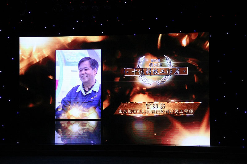 12月18日,我市举行第四届十佳科技工作者颁奖仪式。山东格瑞德集团有限公司董事长、高级工程师管印贵被授予“十佳科技工作者”称号。省科协副主席于洪文,市委常委、统战部部长彭小毛,副市长马俊昀,市政协副主席康志民、辛志才出席。