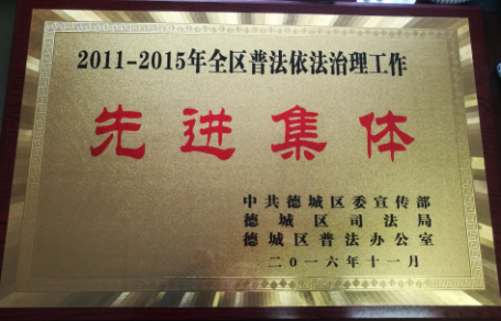此荣誉的获得,是德城区委宣传部、德城区司法局对集团认真贯彻落实“六五”普法规划,深入开展法制宣传教育工作的肯定与支持。“六五”普法以来,集团高度重视依法治企,在日常工作中扎实推进多层次依法治理工作,提高公司全员法制意识和法制观念。通过建立良好的沟通机制,为我公司开展法务工作提供了有力保障。