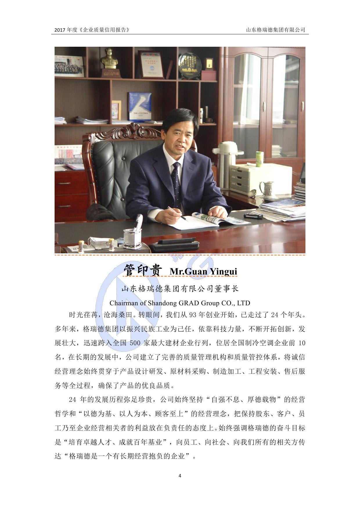 格瑞德1993年建立于山东德州,目前是一家围绕人工环境,横跨新能源、新材料、装备制造、节能环保、信息技术五大战略新型产业的企业集团。格瑞德进行全球化业务运作,产品和服务遍布全国的每一个省市和全球五大洲的100多个国家和地区,广泛应用于基建工程、商业地产、工业制造、农业开发、电子信息、车辆工程、环保处理、医药净化、海洋工程、轨道交通等领域。格瑞德从业人员过万人,在山东、贵州、四川、新疆、内蒙等地建有生产基地,在上海、北京、济南、兰州以及美国洛杉矶建有研发中心。