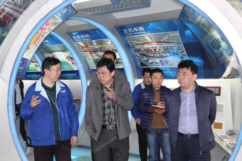 集团行政总监马利忠对王局长一行进行了热情接待,随后带领王局长一行参观了集团展厅,对公司主要产品进行了讲解,并陪同领导一行参观了空调器、主机等主要车间。