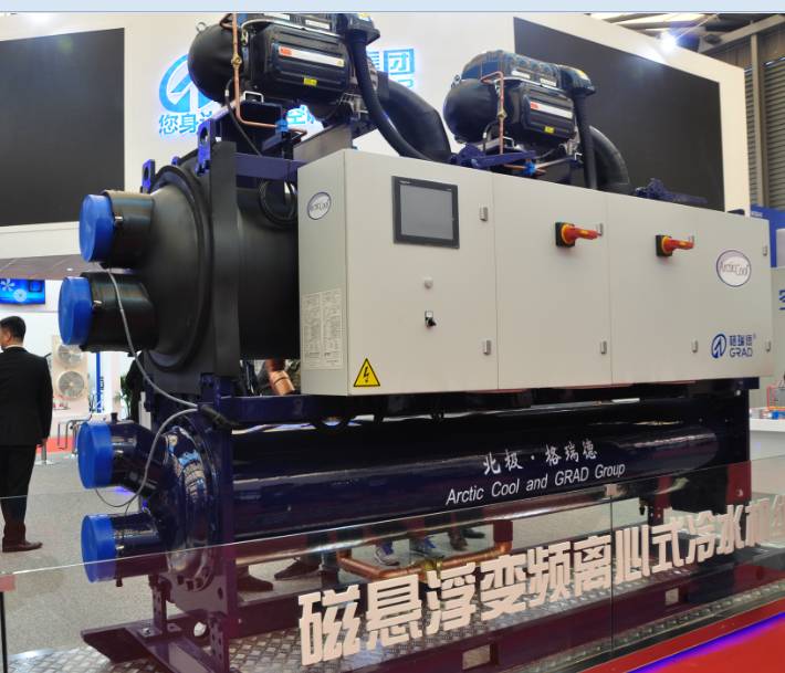 4月12日上午,第28届中国制冷展上格瑞德在展台召开新品发布会,携手北极制冷、丹佛斯推出了磁悬浮变频离心式冷水机组。