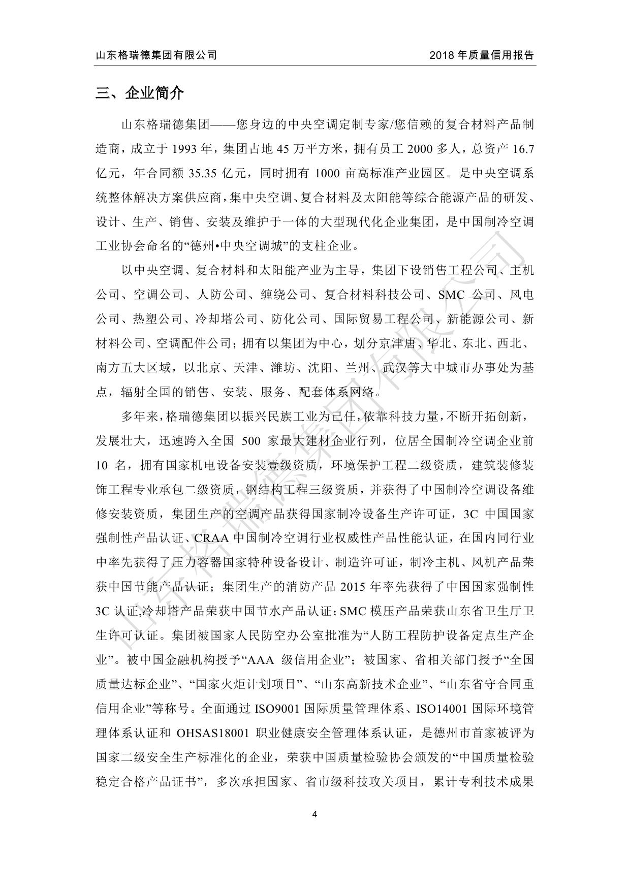 格瑞德1993年建立于山东德州,目前是一家围绕人工环境,横跨新能源、新材料、装备制造、节能环保、信息技术五大战略新型产业的企业集团。格瑞德进行全球化业务运作,产品和服务遍布全国的每一个省市和全球五大洲的100多个国家和地区,广泛应用于基建工程、商业地产、工业制造、农业开发、电子信息、车辆工程、环保处理、医药净化、海洋工程、轨道交通等领域。格瑞德从业人员过万人,在山东、贵州、四川、新疆、内蒙等地建有生产基地,在上海、北京、济南、兰州以及美国洛杉矶建有研发中心。